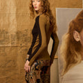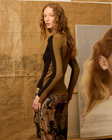 Jersey de escote pico bicolor en colores negro y oliva con cortes asimétricos en el bajo y en los puñosP552.751.JER.7511-998_S