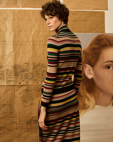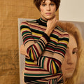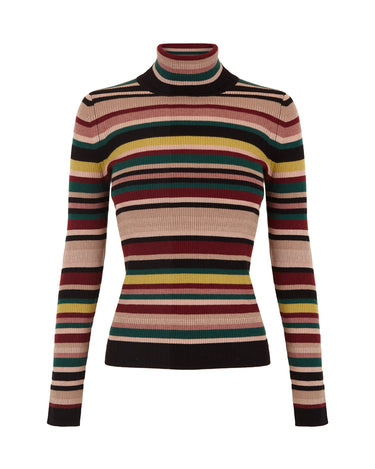 Jersey de cuello alto multirayas que combina color berenjena, lima, verde, maquillaje, negro y beigeP552.775.JER.7752-983_M