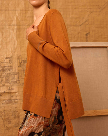 Jersey de escote pico con lazadas laterales en color naranjaP552.774.JER.7749-102_S