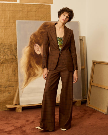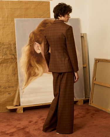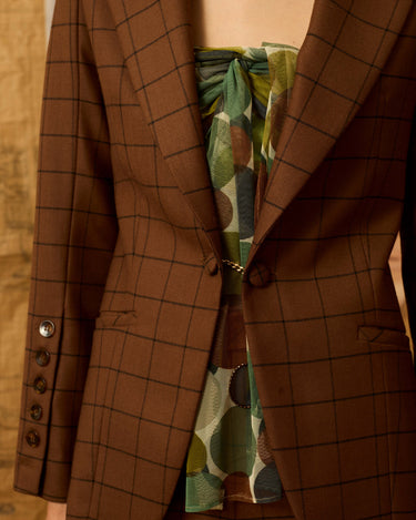 Blazer en tejido marrón con cuadros ventana. Cierre mediante botón forrado del mismo tejido y detalle en cierreP552.407.BLA.4072-404_38