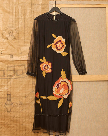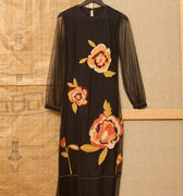 Vestido de tul estilo midi en color negro con flores a contraste bordadas en India y de diseño propio de nuestra diseñadora.P532.429.VEM.5342-600_S
