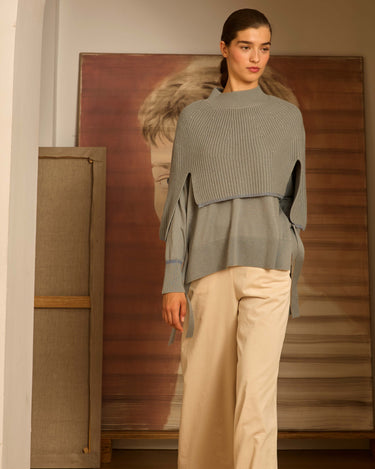Aquamarine ribbed poncho