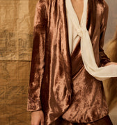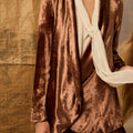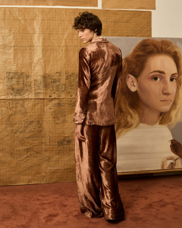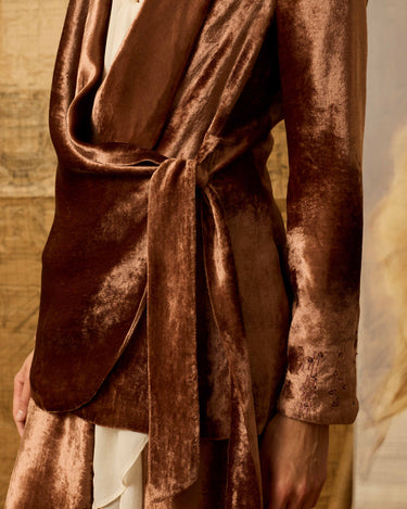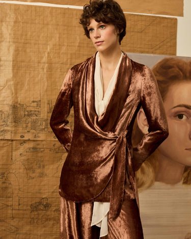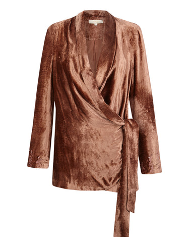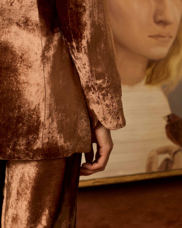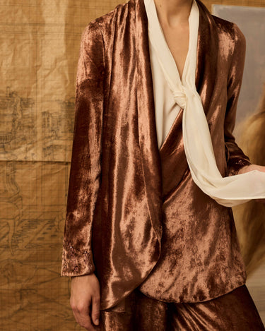 Blazer de terciopelo color maquillaje, se cruza mediante un botón interno y la lazada lateral. Tiene detalle de bordados en los puñosP552.133.BLA.1332-019_36