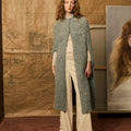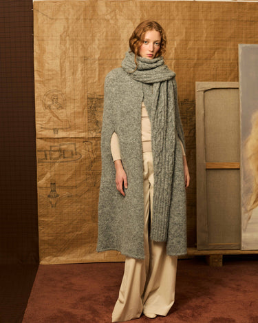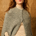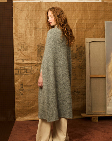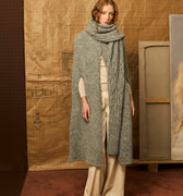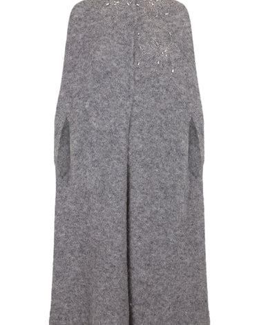 Capa con flores bordadas en tono plateado con aperturas para los brazos en color gris
