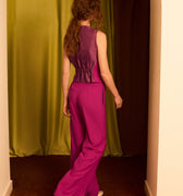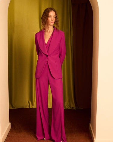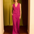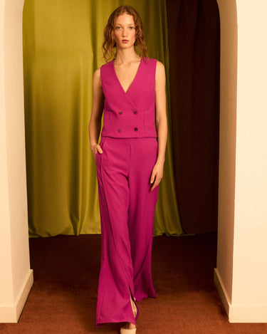 Chaleco de sastrería en crep con triple abotonadura y bolsillos color buganvilla. Detalle en la parte trasera. Hecho en EspañaP542.115.CHL.4116-532_XS