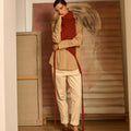 Cuerpo delantero de lana de cuello alto y cintas para abrochar en cintura