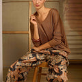 Jersey de cuello pico y manga larga en punto de lurex liso de color cobreP552.666.JER.6666-410_S
