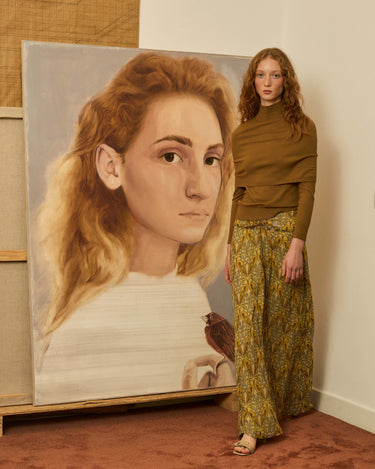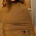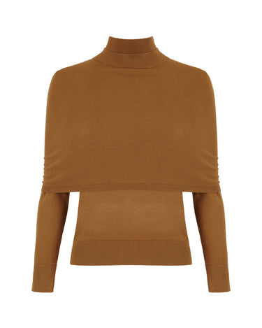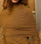 Jersey de cuello alto con capita para cubrir los hombros o llevar de diferentes formas en color olivaP552.751.JER.7514-302_S