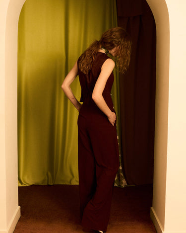Pantalón granate en crep de sastrería con abertura lateral. Hecho en EspañaP542.115.PAN.4113-116_36