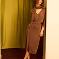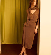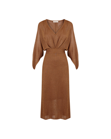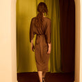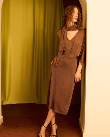 Vestido midi de cuello pico y manga larga con cinturón para anudar en color cobreP552.666.VEM.6662-410_36